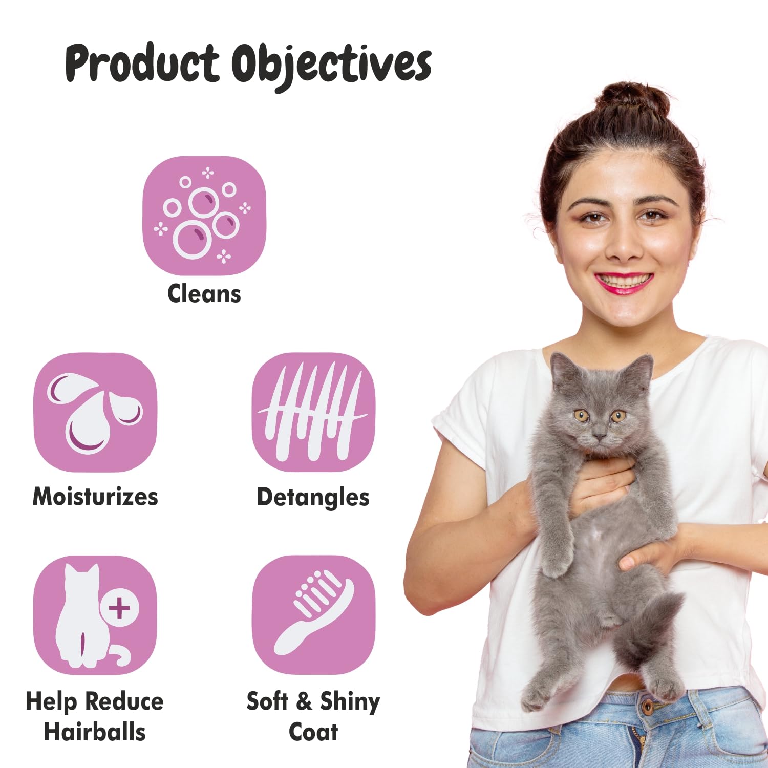 • Gentle, pH-balanced shampoo with strawberry extract for cats